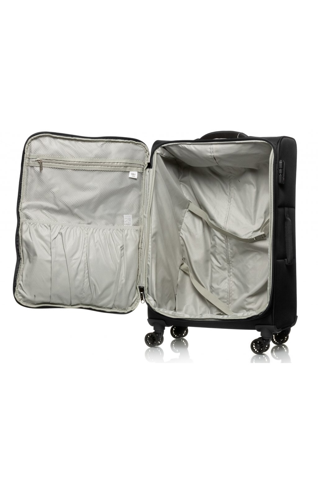 Uvnitř kufru najdete další kapsy volné i na zip. Oceníte rovněž utahovací popruhy, které nejsou křížové jako u vetšiny kufrů. Rovněž polstrování je velmi příjemné.