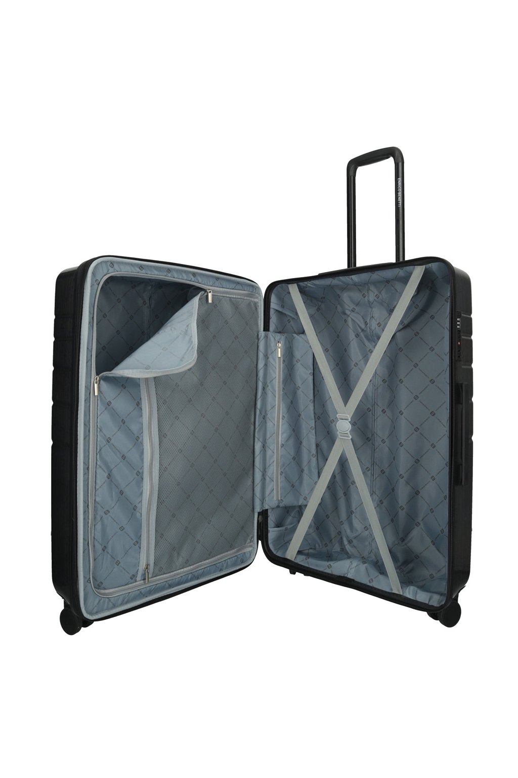 Jako většina kufrů Enrico Benetti i Miami zdobí módní design. Skořepina je vyrobena ze 100% kvalitního ABS. S vytaženým vysunovacím madlem naroste výška na 105 cm a samozřejmě nechybí pevná madla. Uvnitř nalezneme zipem oddělený prostor, křížové fixační popruhy i praktické kapsy na zip.